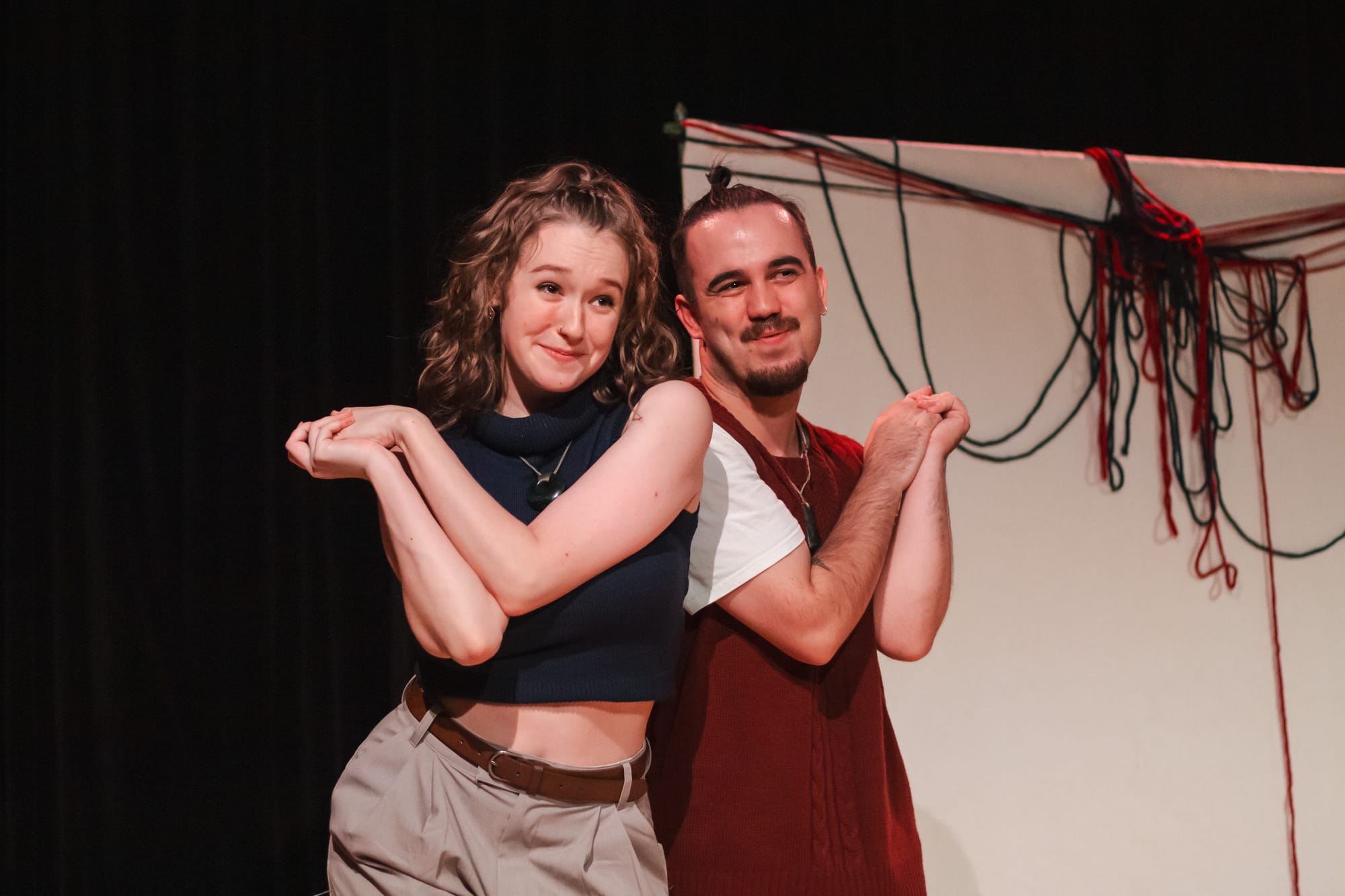 Tane Te Pakeke-Patterson and Gisele Proud are the co-creators and performers of the work, and they have an immediate rapport and chemistry with the audience; charming without being ingratiating. It shouldn’t be surprising that the creators and performers of the work share sensibilities with that same work, but there’s a marriage between everything onstage that feels deeply, pleasantly, cohesive. This isn’t Who’s Afraid of Virginia Woolf? and it’s not Waiora; gentle truths and realities are just as valid as the violent, earth-shattering ones.